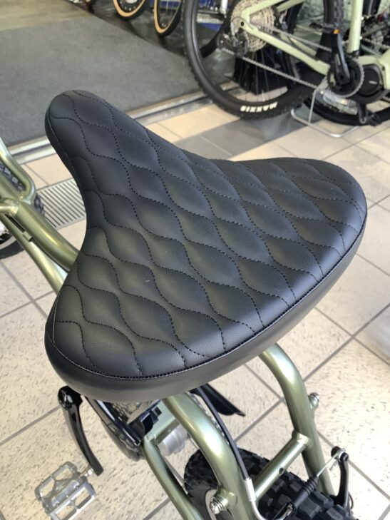 純正サドルから、座面が大きくクッション性の高いものに変更。