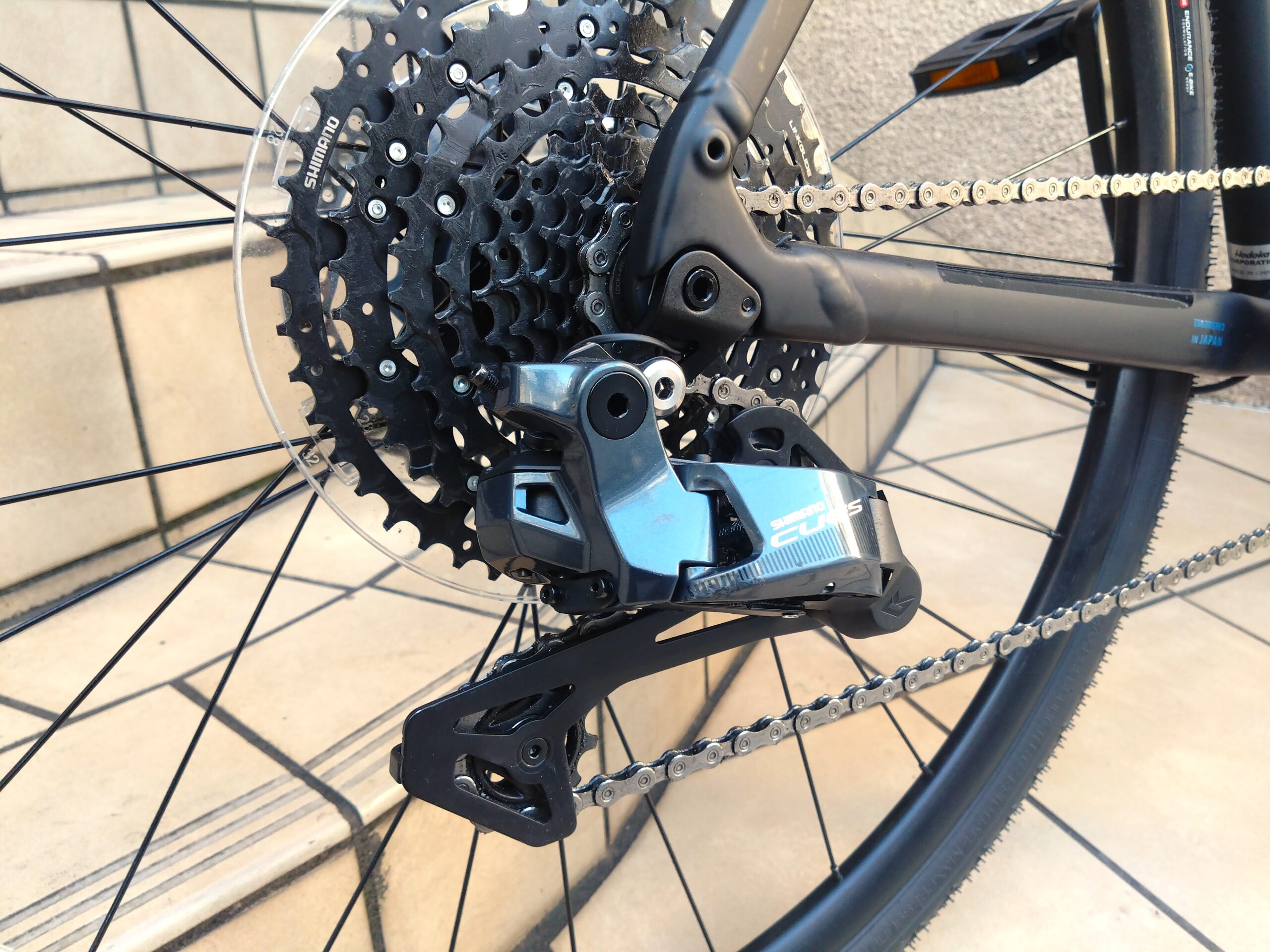 ①速度、②斜度(平地、上り下りを判断)、③ペダルの回転数(速度とギヤ比から算出)を感知するセンサーを内蔵し。この3つの要素によってライダーに最適なギヤ比を判断、電動のリヤディレーラーによって変速が制御されます!