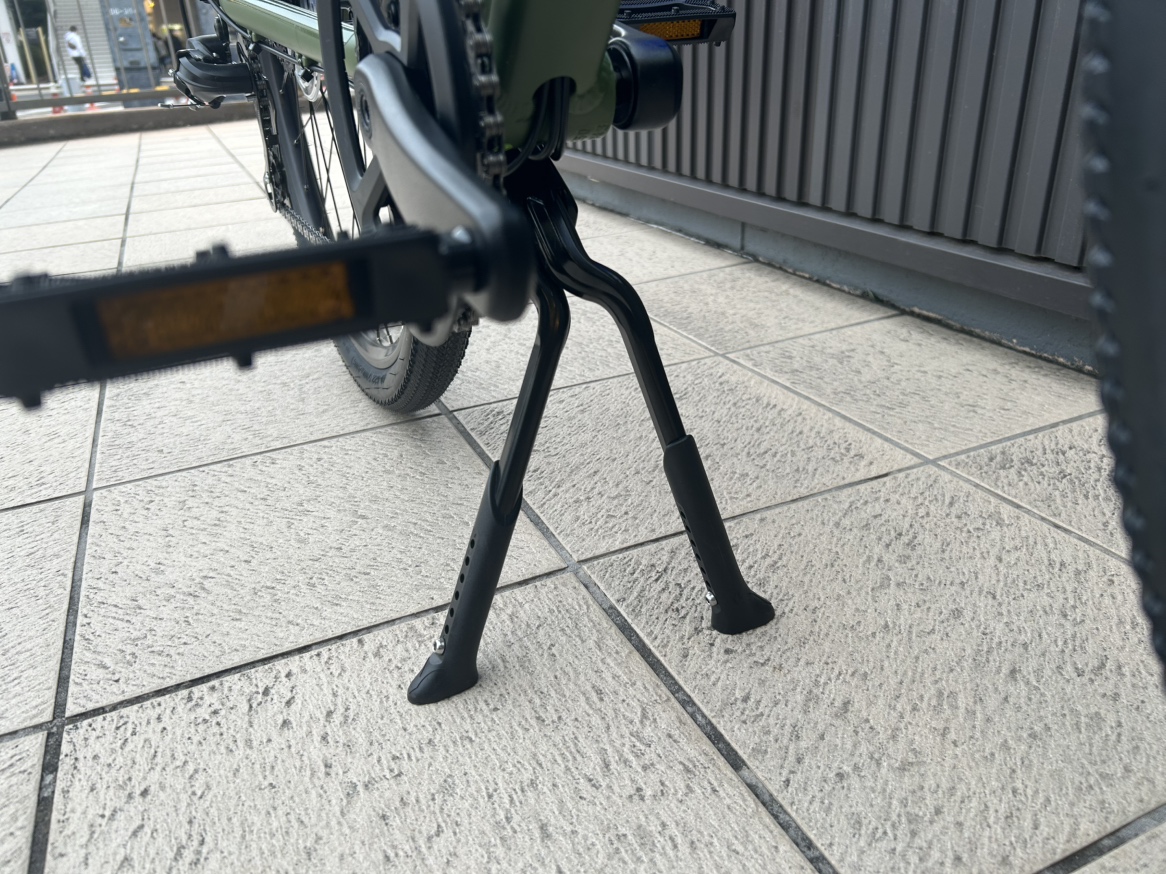 駐輪時に転倒しにくいよう2本足スタンドにチェンジ!